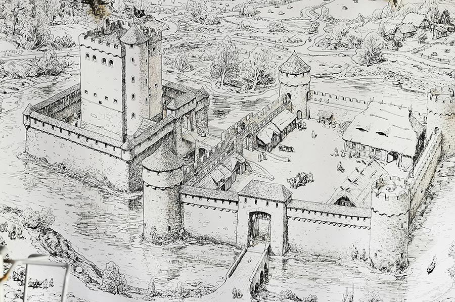 Die Wassergräben sind heut verlandet oder zugeschüttet, wurden aber bis in das 18. Jahrhundert über eine hölzerne Leitung von einem 800 Meter westlich gelegenen Wasserlauf gespeist.