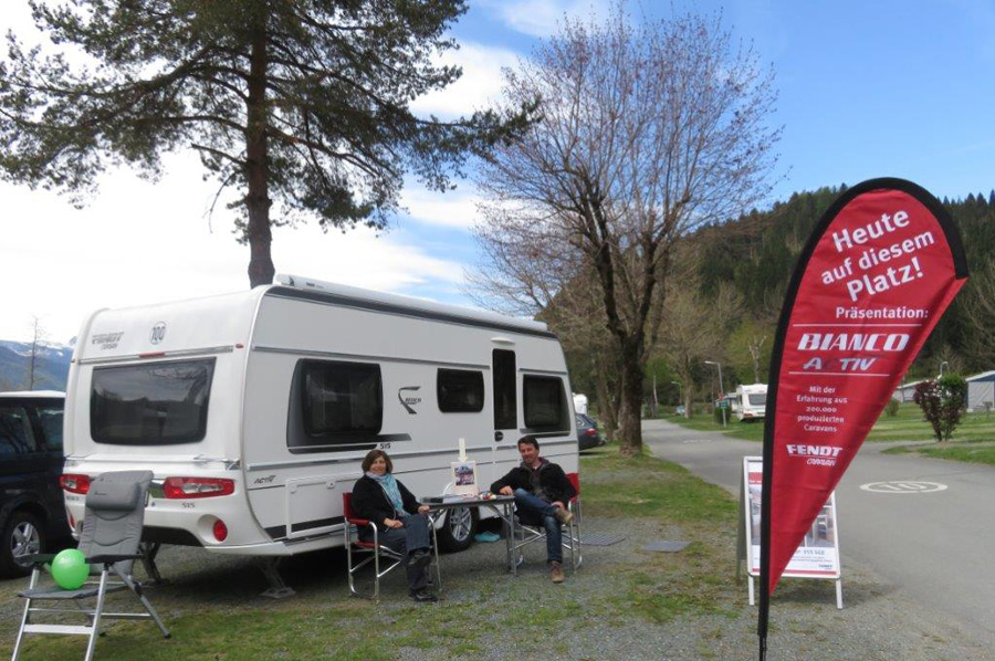 Der Bianco Activ 515 SGE hat nicht nur dieses Ehepaar von Fendt überzeugt. Die Fendt-Idee, eine Präsentation auf den Campingplätzen durchzuführen, kommt von Jahr zu Jahr besser an.