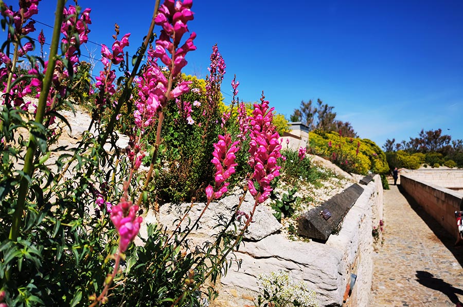 Ein riesiges Bauwerk mit extrem hohen Mauern und Umgängen, die heute natürlich nicht mehr der Verteidigung dienen, deshalb mit prächtig blühender Flora geschmückt sind. Wir waren begeistert.