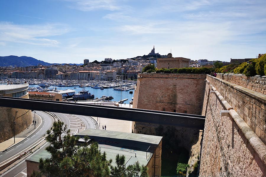 Das Fort Saint-Jean ist eine Festungsanlage in Marseille, die 1660 unter Ludwig XIV. am Eingang zum Alten Hafen gebaut worden war. Seit 2013 ist das Fort durch zwei Fußgängerbrücken mit dem historischen Viertel Le Panier und dem Museum der Zivilisationen Europas und des Mittelmeers verbunden, auf das wir später noch eingehen werden. Aber eins nach dem anderen.