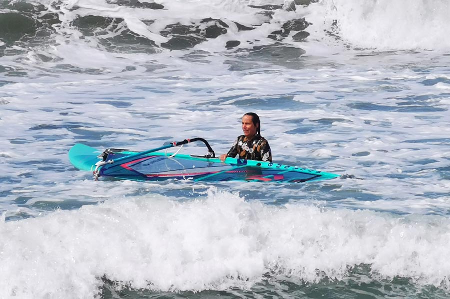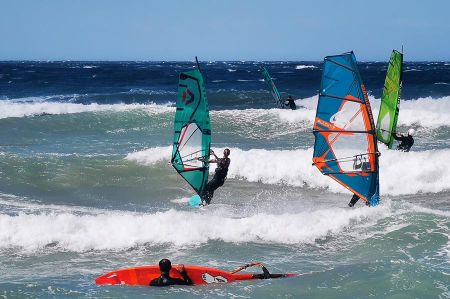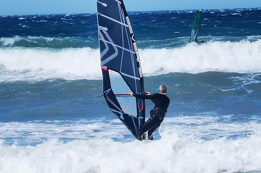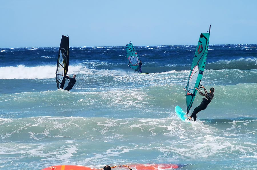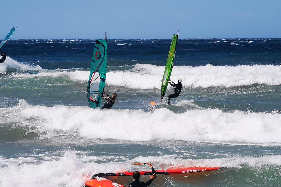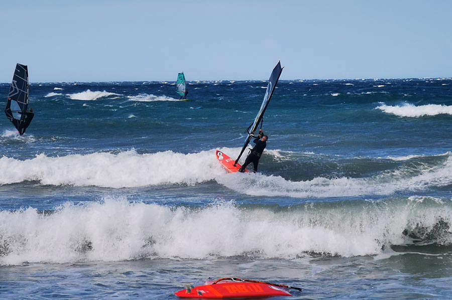 Es war fast ein Schauspiel mit anzusehen, wie die wirklich hohen und ungleichmäßigen Wellen von Wellenreitern und Kite-Surfern immer wieder hohes Können und Kraft abforderten, Ihre Sprünge etliche Meter weit und hoch.