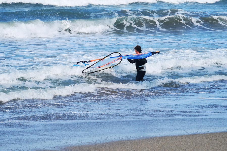 Und wie es immer so ist, wenn es um Wetterlagen geht, für manche ein Fluch – andere wiederum sind begeistert. So waren wir bei unserer Ankunft am Plage de Prado bei strahlend blauem Himmel zunächst verwundert, wie wenig Besucher sich am Meer aufhielten, merkten aber auch schnell die Gründe dafür. Der starke Wind sorgte für Flugsand, der schon heftig auf die Haut einwirkte. So war trotz Sonnenscheins die Regenjacke ein wirksames Mittel gegen den Pelling-Effekt des Sandes.