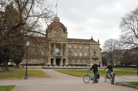 Nach dem ausgiebigen Frühstück in der, nur etwa 800 Meter vom EU Sitz entfernt liegenden Wohnung von Patrick und Dank der guten Ausstattung mit sportlichem Gerät ist ein Fahrrad für jeden von uns Dreien da. So beschließen wir eine erste Rundfahrt durch die Stadt mit Patrick als Radführer, zumal Straßburg über ein wirklich tolles Netz von Fahrradwegen verfügen soll, wie uns Bekannte schon vorab berichtet hatten.