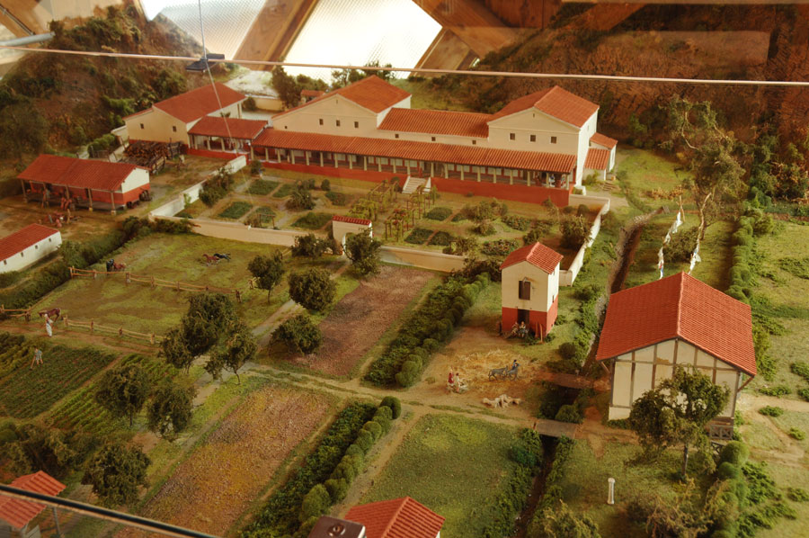 Am Beispiel der Villa rusticae "Römervilla" in Bad Neuenahr lässt sich das römische Versorgungsmodell recht deutlich erkennen, obwohl der Begriff Römervilla einwenig in die Irre führt. Auch wenn es sich um ein wirklich prachtvolles Gebäude gehandelt haben muss, eine Villa im modernen Sinn war es keinesfalls. Der Begriff "villa rusticae" ist noch dazu eine moderne Wortschöpfung. Das Landhaus war Mittelpunkt eines landwirtschaftlichen Betriebs und bestand meist aus einem Hauptgebäude und mehreren, innerhalb eines ummauerten und somit geschützten Hofs gelegenen, Wirtschafts- und Nebengebäuden.