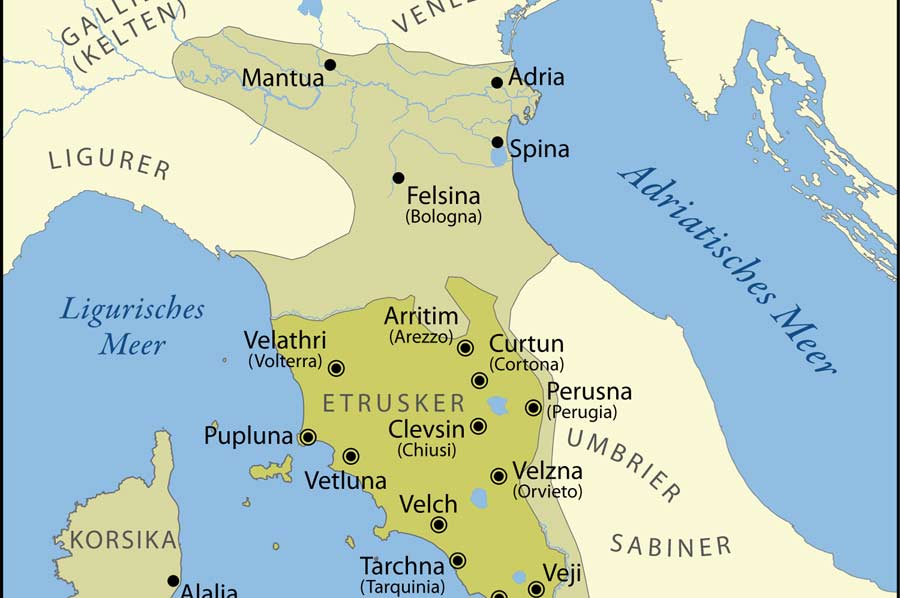 Die etruskische Kultur hat sich zwar erst auf dem Boden Etruriens entwickelt, unklar bleibt jedoch, ob die Bevölkerungsmehrheit erst unmittelbar vor Entstehen jener Kultur eingewandert ist, und woher die etruskischeSprache kam, die ein wesentlicher Baustein der etruskischen Kultur wurde. Schon im Altertum waren dazu zwei verschiedene Hypothesen bekannt: