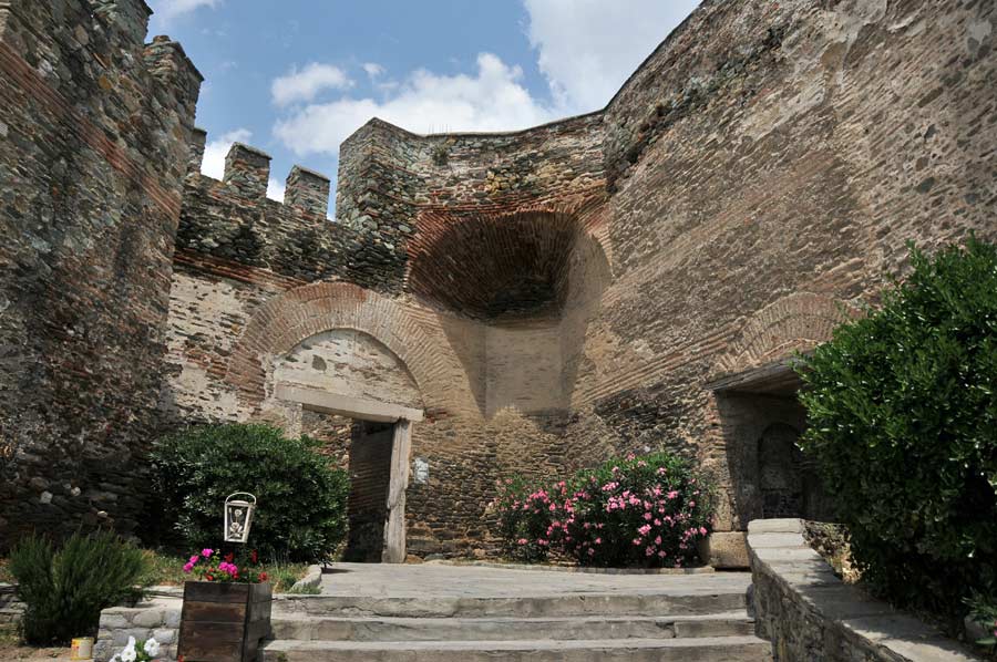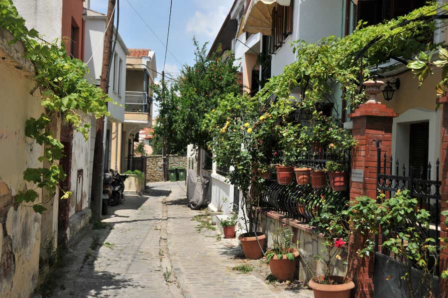 Was im übrigen auch für die Altstadt gilt, durch die wir im Anschluss zurück in die Unterstadt spaziert sind. An jeder Ecke gibt etwas zu entdecken, denn viele der Häuser sind alt, klein, urtümlich, farbenfroh und im typisch makedonischen Stil erbaut. Die Straßen im oberen Bereich sind oftmals sehr schmal, steil und verwinkelt, was der Altstadt einen besonders dörflichen Charakter verleiht. Überall trifft man auf kleinere und größere Kirchen wie die Agios Nikolaos Orphanos aus dem Jahr 1310 inmitten eines zu gewucherten Gartens, auf die Profitis Ilias, die Agia Ekaterini und die Agii Apostoli, sowie das etwa 150 Meter über dem Meer gelegenes Mönchskloster Moni Vlatadon nahe der Stadtmauer, das im 14. Jahrhundert gegründet und in der Vergangenheit vollständig restauriert wurde.