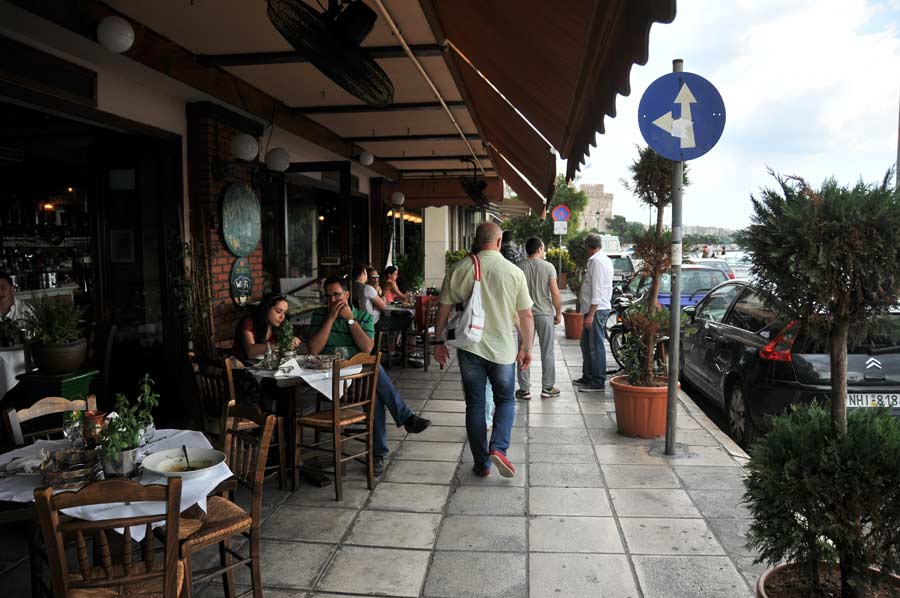 Wir lassen den Nachmittag bis zur Abfahrt unserer Fähre zurück nach Peraia langsam mit einem Spaziergang durch die Einkaufspassagen ausklingen. Eine Empfehlung sind die kleinen boutique-ähnlichen Geschäfte, die modische Textilien zu kleinen Preisen anbieten, besonders im Stadtteil Ladadika. Den Rest des Weges zurück zum Anleger begleiten uns die unzähligen Straßencafes der Uferpromenade, die so einladend wirken, das man sich gern auf einen weiteren Frappé setzt.