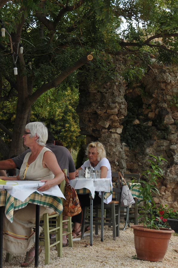 Da sich einige kleine Restaurant und Gasthöfe unmittelbar in und an der Stadtmauer angesiedelt haben, entsteht ein sehr pittoreskes Bild des kleinen Ortes Potidea.