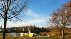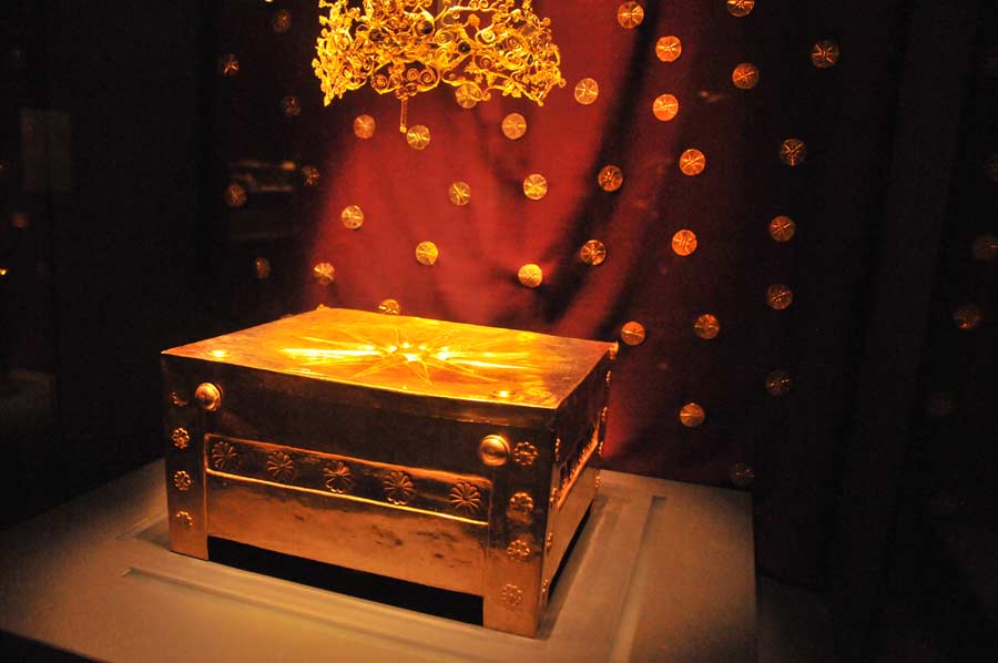 Vergina - Während des Besuchs des wirklich sehenswerten Museums von Vergina waren wir einige Male auf den so genannten Stern von Vergina gestoßen, dem sechzehnstrahligen Sonnensymbol, das uns zunächst auf der großen, goldenen Aschenkiste Philipps II aufgefallen war.