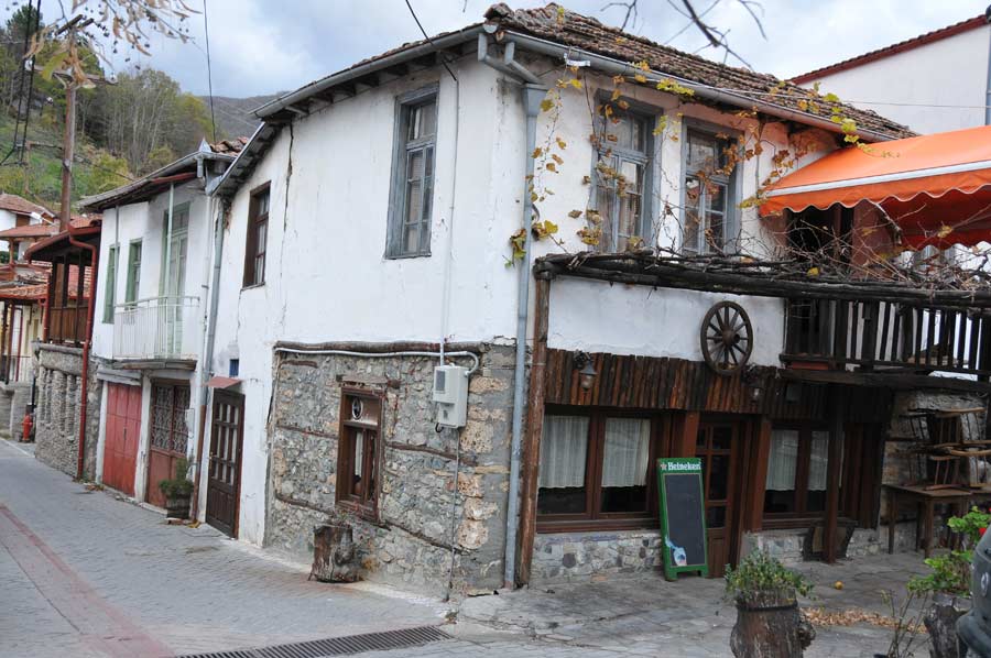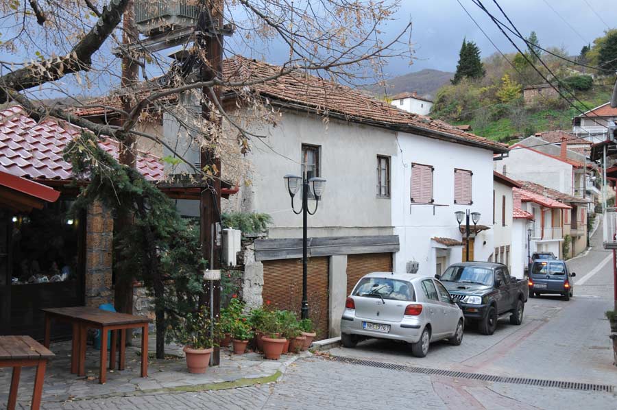Wir wunderten uns über die zahlreichen Fahrzeuge hier auf dem Dorfplatz, so das ohne exaktes Einparken und Wenden kaum noch eine Lücke zur Durchfahrt frei blieb. Kein Problem, so sagte uns Daniel, die Leute kommen zum Essen und rangieren halt ein wenig, wenn es wieder losgehen soll. Schnell wurde klar, warum es hier auf die Einwohnerzahl gerechnet so viele Restaurants and Tavernen gab. Kato Vermio ist ein Wintersportort. Entsprechend gibt es viele restaurierte und neu teilweise ausbaute Ferienhäuser, Berghütten und Chalets im Dorf. Das Klima ist im Sommer recht kühl, im Winter aber sehr schneereich. Der Skilift von Seli war der erste Lift, der in Griechenland gebaut wurde, immerhin bereits 1934.Die meisten Bewohner von Kato Vermio sind griechisch-sprachigen Walachen.