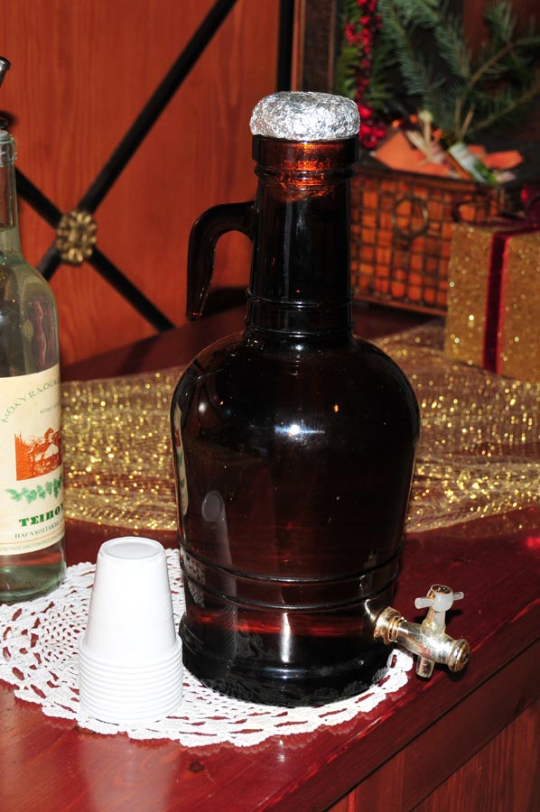 Tsipouro - Ab Mitte Herbst bis Ende des Jahres wird auch in der Region um Bourazani Tsipouro gebrannt, wozu es laut Giorgos grundsätzlich und obligatorisch einer speziellen Erzeuger Lizenz bedarf.