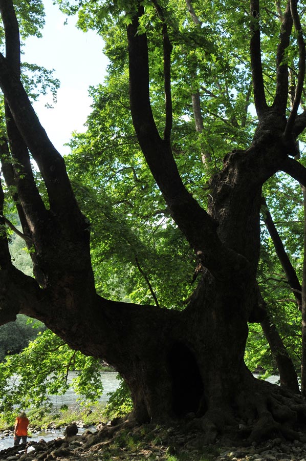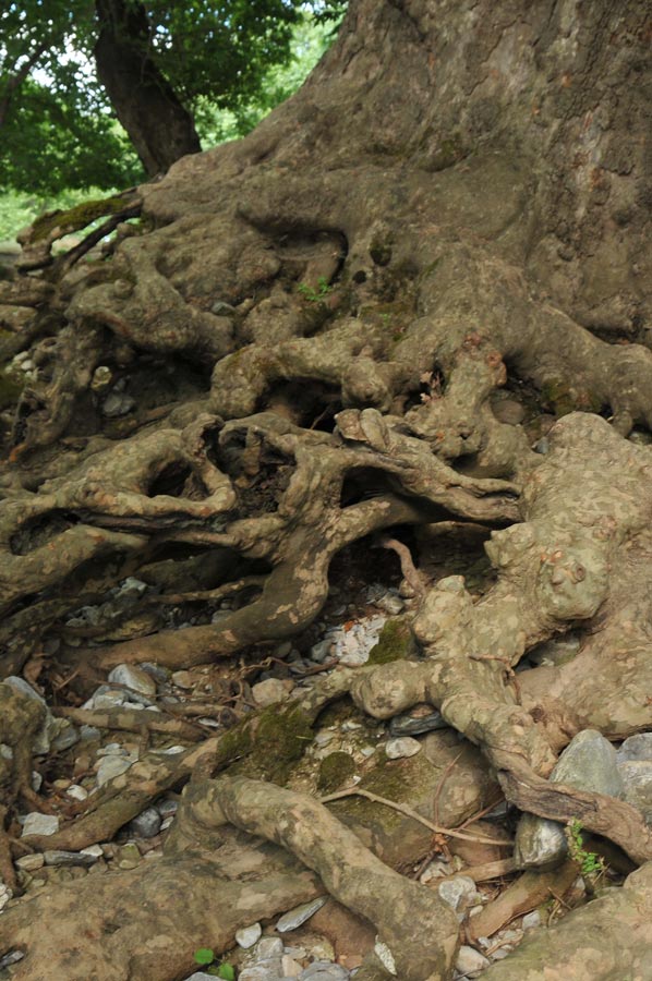 Davon einmal abgesehen, findet der Betrachter sehr interessante Wuchsformen und ausgeprägtes Wurzelwerk, das seines gleichen sucht. John und Andrea, die mächtiges Baumwerk aus ihrer Heimat Brasilien kannten, waren ob der Vegetation am Pinios genau so wie auch wir überrascht.
