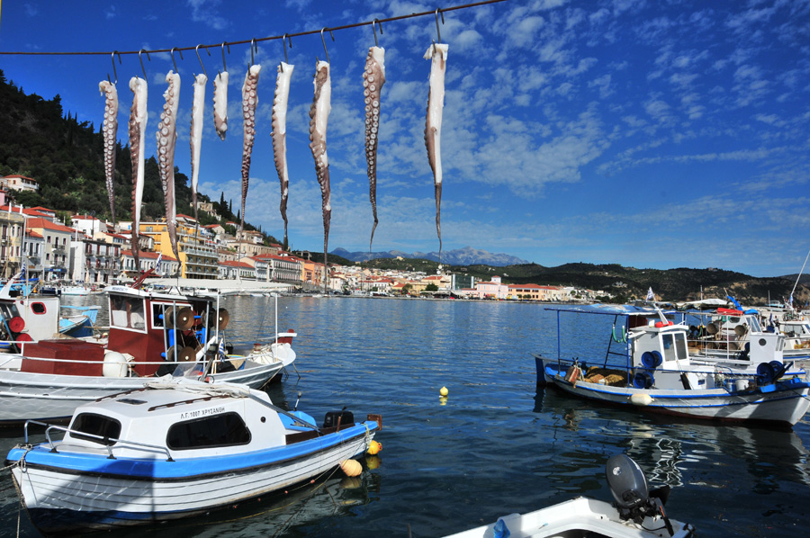 Gythio ist eine Kleinstadt, die über eine lange Hafenpromenade, über steile Treppen und malerische Gassen verfügt und so urgriechisches Ambiente vermittelt. Einzig übrig geblieben aus ihrer antiken Vergangenheit, verfügt die Stadt heute nur mehr über ein kleines römisches Theater; viele bauliche Zeitzeugen versanken im 4. Jh. n. Chr. durch ein Erdbeben unter dem Meeresspiegel.