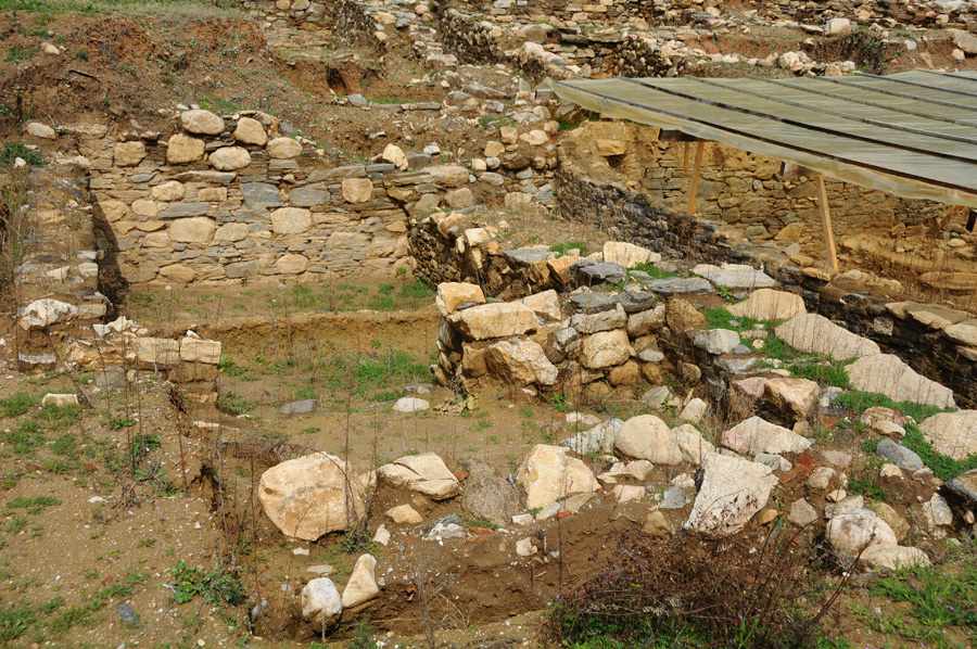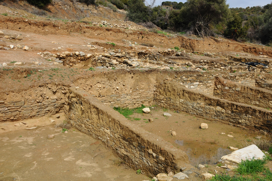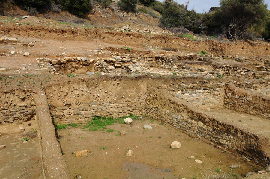 Die Ausgrabungen der letzten Jahre enthüllten Teile einer defensiven Verteidigung, viele Privathäuser, öffentliche Gebäude und Straßen der archaischen und hellenistischen Stadt, die bemerkenswert gut erhalten waren. Zwei wichtige Gräber des mazedonischen Typs wurden ebenfalls ausgegraben, ebenso wie Ruinen von rechteckigen Gräbern der klassischen und hellenistischen Periode.