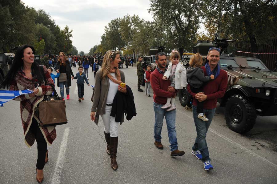 An diesem Tag hatten sich tausende Menschen entlang der Paradestraße Leof. Meg. Alexandrou und Geor. Papandreou versammelt, um dem Spektakel beizuwohnen. Wie viel tausend Menschen allein an der Parade selbst teilnahmen, ist nicht einmal zu schätzen. Allerdings hatte die Parade eher den Charakter eines riesigen Volksfestes, denn schon vor der Parade konnten Einsatzfahrzeuge der zivilen Organisationen als auch Panzer und Einsatzfahrzeuge des Militärs recht freizügig besichtigt werden, was vor allem vielen Kindern große Freude bereitete. Hoffentlich kommen letztgenannte Fahrzeuge nie wieder zum Einsatz, was gerade im Hinblick auf die vielen Konfliktherde Weltweit wohl ein Wunschtraum bleiben wird.
