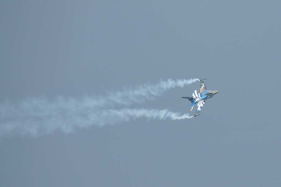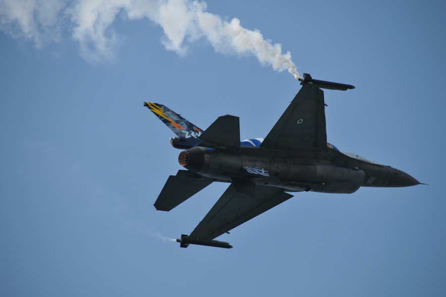 Mit einer Staffel Düsenjäger der Luftwaffe sowie einer Gruppe verschiedenster Helikopter, die den Paradenzug entlang der Küste überflogen, wurde auch der Abschluss der Parade eingeleitet. Ein Flugzeug der militärischen Kunstflugstaffel zeigte verschiedenste spektakuläre Übungen, die aus Sicherheitsgründen allerdings überwiegend über dem Meer stattfanden. Wir wollten den Tag mit einem kleinen Spaziergang durch die Innenstadt beenden bevor es zurück auf den Camperstopp Zampetas gehen sollte.