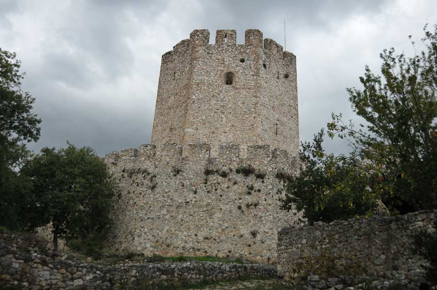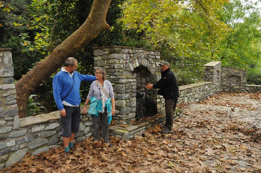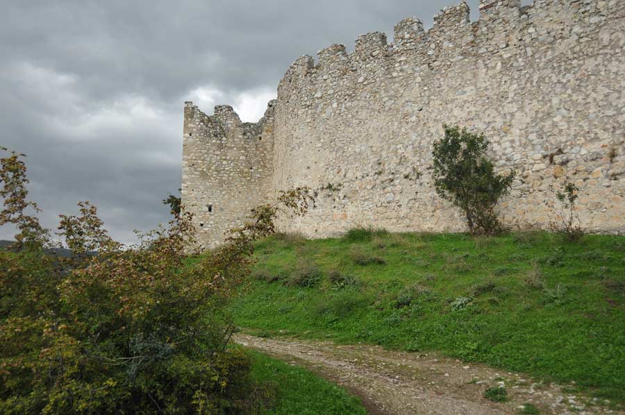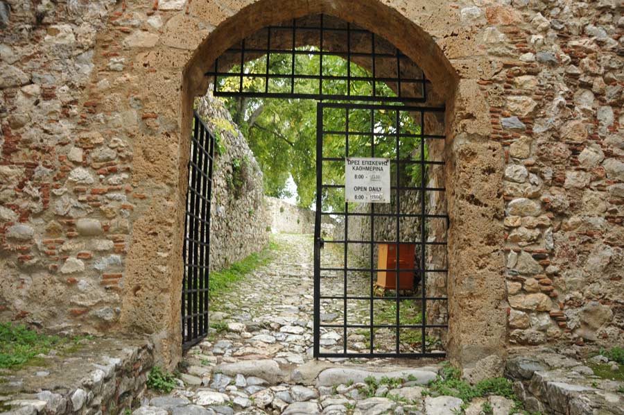 Noch schlängelt sich der Verkehr in teilweise engen Serpentinen durch den rund 2.000 Einwohner zählenden Ort im Süden der Region Zentralmakedonien. Wir, das sind diesmal Martina und Sven, sowie Carol und David aus Liverpool, die auch gerade bei Zampetas zu Gast sind und den Winter im Süden Europas verbringen möchten. Kurz nach der Ortsmitte biegen nach links auf die Parkplatzanlage am Fuße des Burgbergs ab, der jetzt, Ende Oktober, nur wenige Besucher zählt. Dann geht es an den Aufstieg zur Burgfeste.