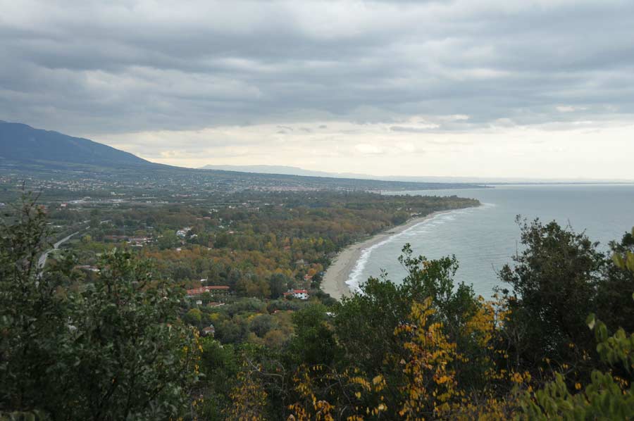 Übrigens wird die Burg mittlerweile für Theaterdarstellungen, Musikkonzerte und andere kulturelle Ereignisse genutzt. In Platamonas befinden sich mehrere Campingplätze sowie zahlreiche Hotels, Pensionen und Ferienhäuser, die aber fast komplett geschlossen waren. Der Strand verbindet Felsen, Kieselsteine und Sand, von dem die Gipfel des Olymps zu sehen sind. Für das klare Wasser und den sauberen Hafen wurde Platamonas 2002 und 2006 mit der Blauen Flagge der EU ausgezeichnet. Heute dagegen war es allerdings sehr stürmisch, so das hohe Wellen über den Strand peitschten.