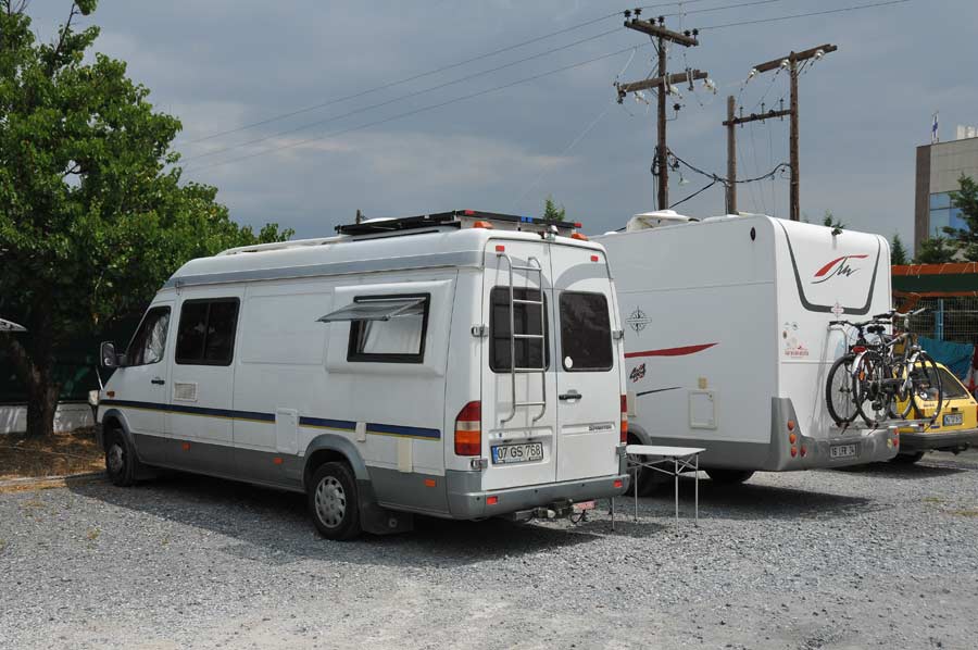 Erstaunt waren wir über die große Anzahl türkischer Camper, die mittlerweile den Anfahrtspunkt Zampetas sowohl zum Einkaufen notwendiger Camperprodukte oder als Reparatur- und Servicestation nutzen als auch für eine Stadtbesichtigung in Thessaloniki, wobei viele auch das Geburtshaus von Atatürk besichtigen. Natürlich hat Thessaloniki auch großartige antike Bauten aufgrund der Lage an der antiken Römerstraße Via Egnatia zu bieten. Natürlich waren wir schnell in diverse Gespräche verwickelt, wurden zu Tee oder auch zum Essen eingeladen, halt das so typisch gastfreundliche Verhalten, wie man es in vielen südlichen Ländern immer noch antrifft. So führten zwangsläufig die Gespräche auch zur gerade beendeten Fastenzeit in der Türkei.