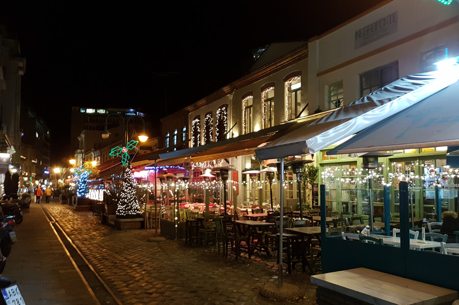 Wir schlossen unseren diesmaligen Besuch in Thessaloniki mit einem leckeren Vorweihnachtsessen ab, wie im Bild unschwer zu erkennen. Das bekannte Stadtviertel Ladadika ist ein geradezu optimaler Ort lokaler Köstlichkeiten.