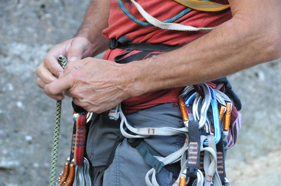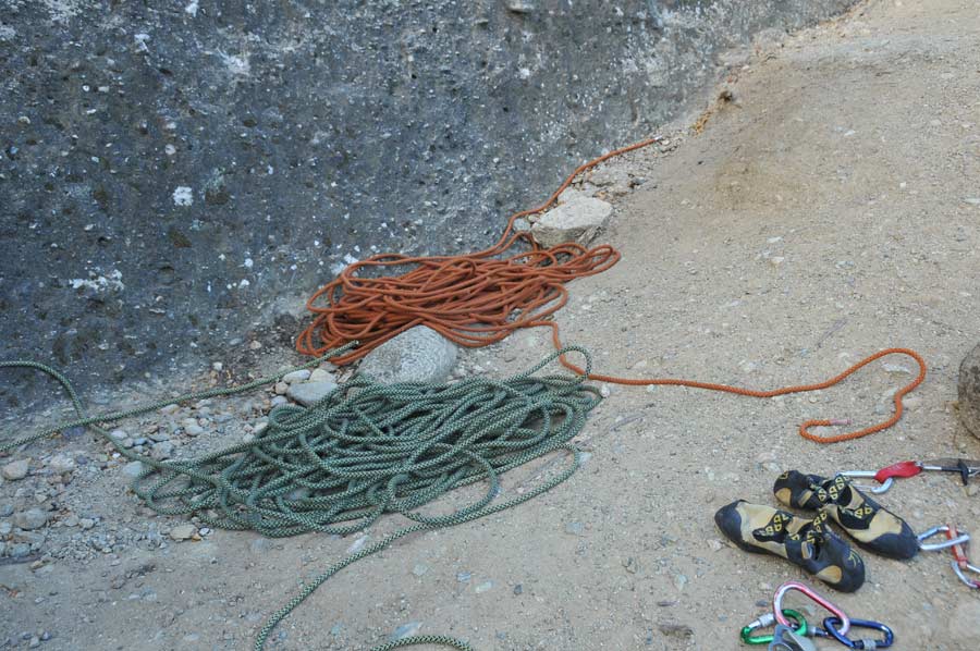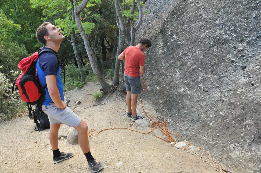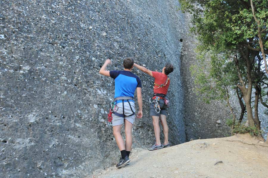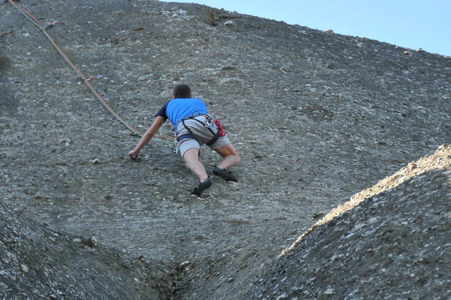 Von größter Bedeutung ist es also, einen möglichst erfahrenen Kletterer der gewählten jeweiligen Routen im Team zu haben oder sich einen örtlichen Kletterer zu "organisieren", die es in Meteora ortsansässig gibt. Wir konnten während unserer Tour selbst feststellen, das auch geübte Kletterer aufgrund von fehlender Routenkenntnis in Schwierigkeiten geraten können, die dann zu einem Notabstieg führten. Trotz adäquater Ausrüstung, aber unter Zurücklassung eines teuren Karabiners.