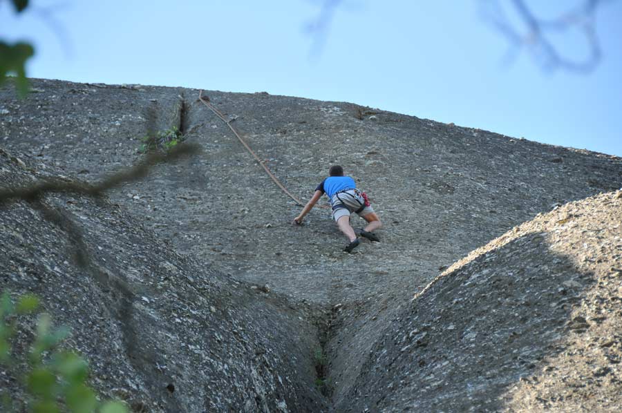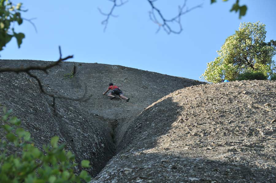 Nur mit Hilfe von Seilen, Netzen, bloßen Händen oder langen, wackeligen Leitern konnten die Gipfel erklommen werden. Heute zieht die Herausforderung dieser göttlichen Felspfeiler Kletterer aus aller Welt nach Meteora. Sie genießen die klassischen Stein-Kletterrouten mit großer Länge und ohne übermäßige Sicherheitsvorkehrungen. Alle Routen sind in der traditionellen Weise von unten nach oben geschnitten. Einige gehen gerade hoch bis zu einer Länge von 500 m, wobei auch Überhänge bewältigt werden müssen.