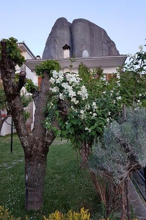 Auf der rechten Seite kommt das in die Felswand gebaute Kloster Ipapanti in Sicht. Unterhalb des Klosters kann man über Treppen zum Kloster hinaufsteigen, es ist allerdings nur zur Besuchszeit geöffnet. Überhaupt sollte man sich über die Besuchszeiten der verschiedenen Klöster vorab informieren, gleichwohl es heute eine Absprache der Klöster untereinander gibt, das nicht alle Klöster am gleichen Tag geschlossen sind.