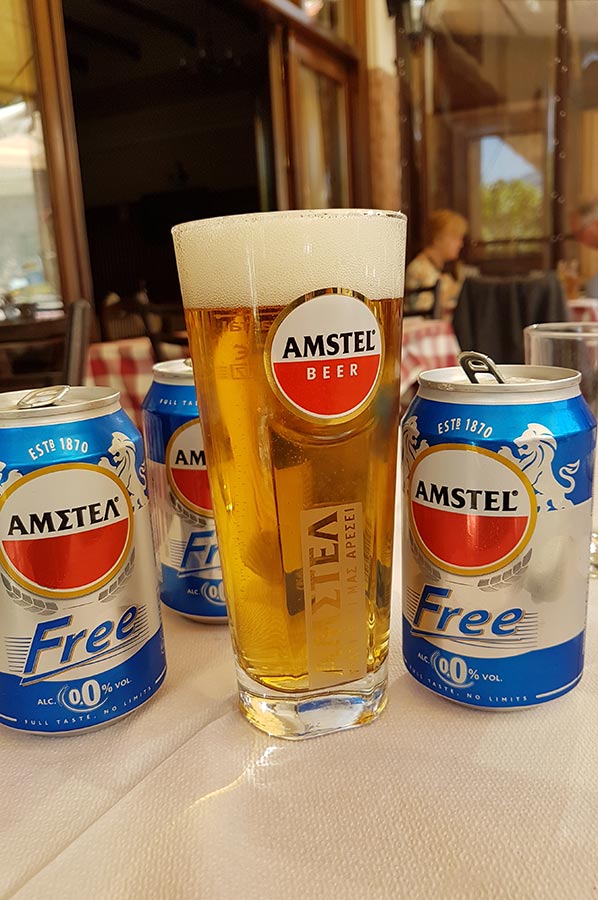 An einem Abzweig bei einer Bank führt der Weg geradeaus zum Kloster Varlaan hinauf. Nach der Besichtigung sind wir wieder bis zu diesem Punkt abgestiegen und dann dem Weg rechts hinunter weiter ins Tal gefolgt, zurück zum Campingplatz Vrachos und auf ein erstes Getränk an die Bar.