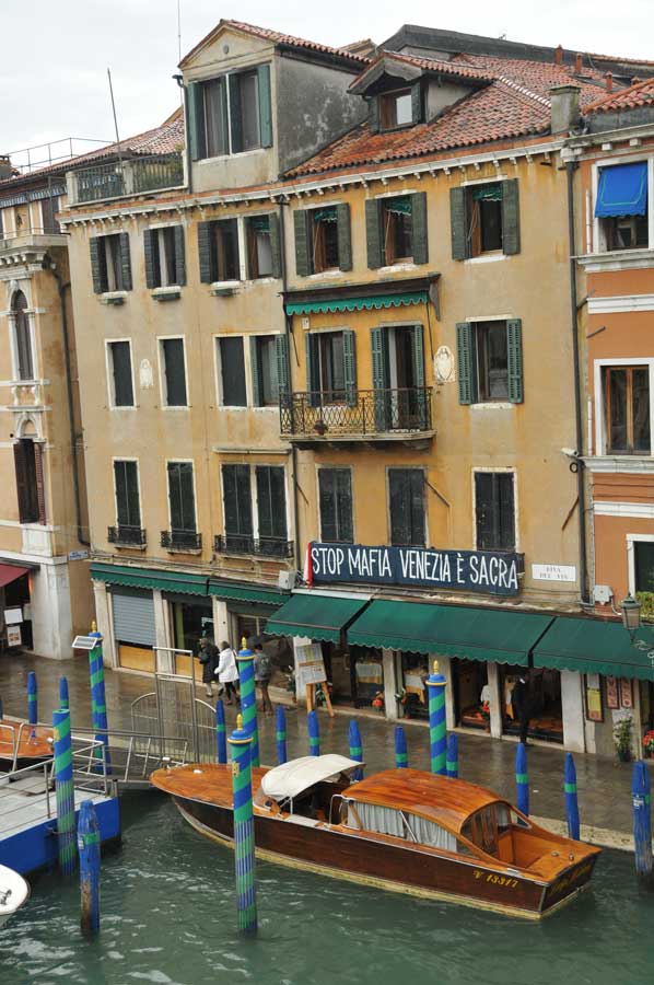 Wir verdanken es unserer beiden Venedigkennern, das wir ohne diese modischen Accessoires trockenen Fußes bis zur Rialto Brücke kamen, wo sich unsere Wege für den Rest des Tages trennten. Einige Erledigungen führten dazu, dass Silvia und Anselm noch zum Bahnhof, wir hingegen die Stadt weiter erkunden wollten.