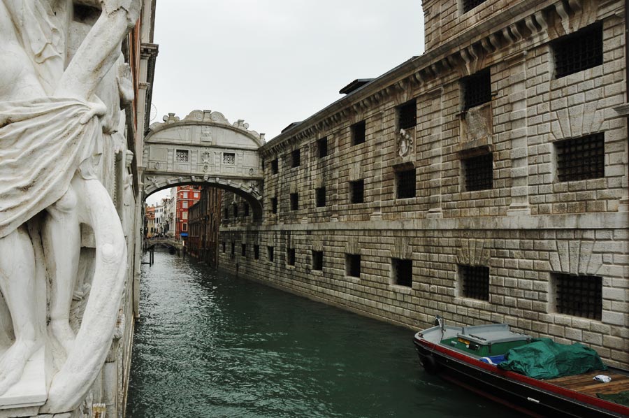 Eine der bekanntesten Brücken, die Seufzerbrücke (Ponte dei Sospiri), verbindet die ehemaligen Staatsgefängnisse im Erdgeschoss, die so genannten Pozzi, mit dem Dogenpalast.