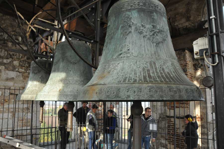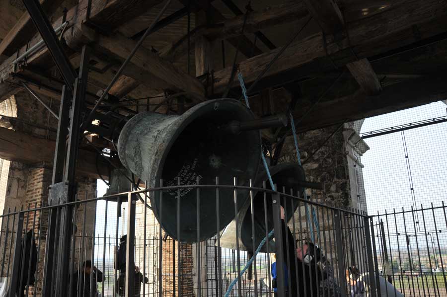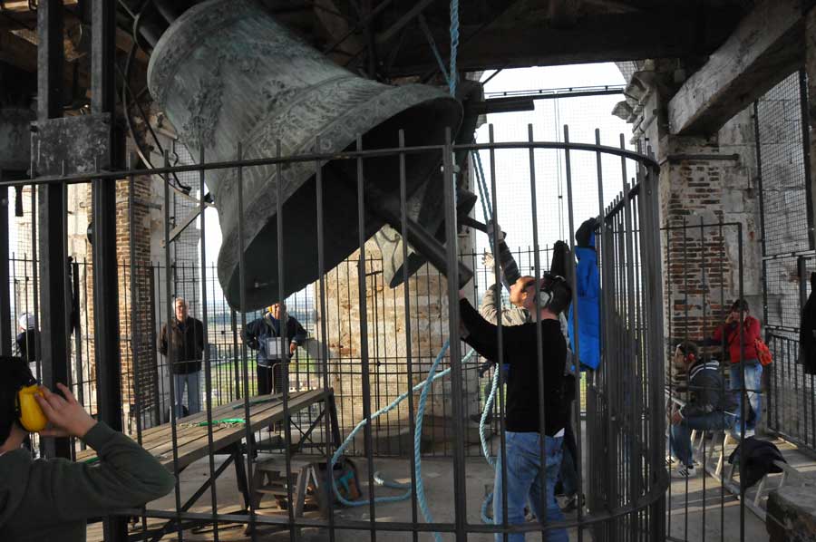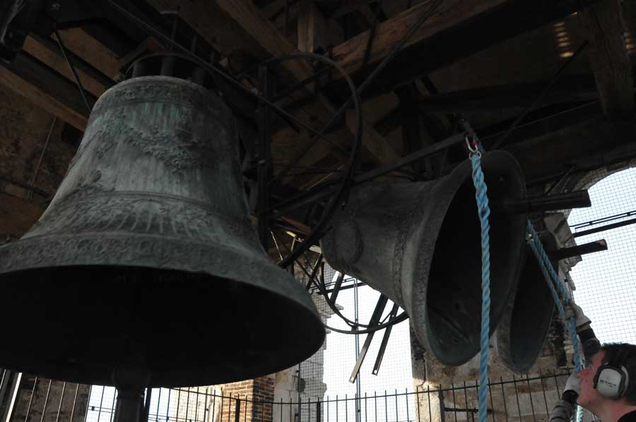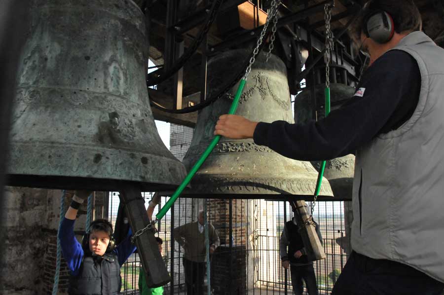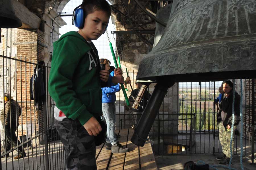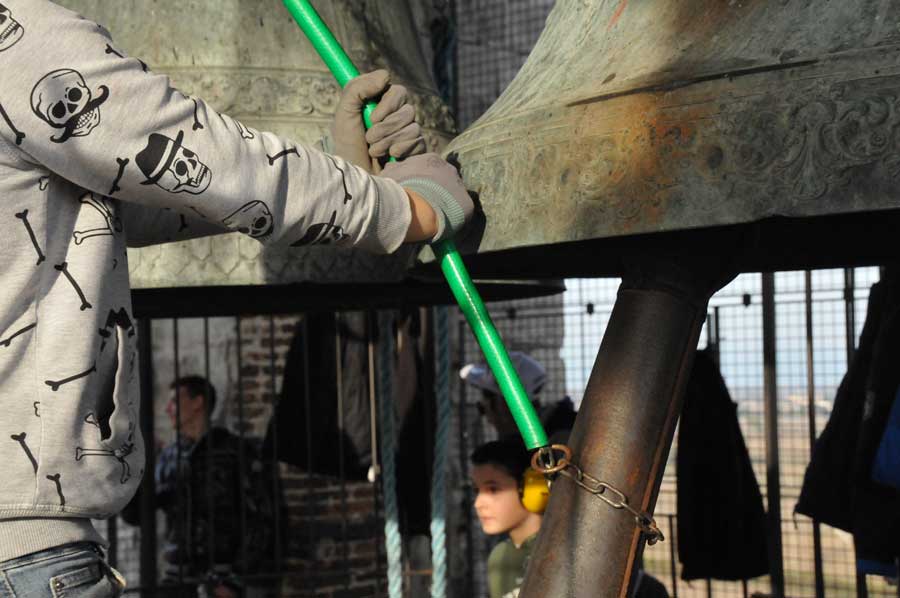 Dann wurden wieder die Größeren aktiv und spannten erneut die Seile zum Bewegen der Glocken. So gab es ein fast einstündiges Konzert der riesigen Glocken, das wohl weit ins Land hinaus zu hören war. Trotz des Gehörschutzes waren die Aktionen der Älteren sicherlich auch noch in vielen Kilometern Entfernung zu hören. Ob das samstägliche Glockenspiel bei allen beliebt ist, konnten wir leider nicht erfahren. Erstaunlich allein schon die Jugendarbeit, die sicherlich auch als eine Empfehlung in anderen Ländern gelten kann.