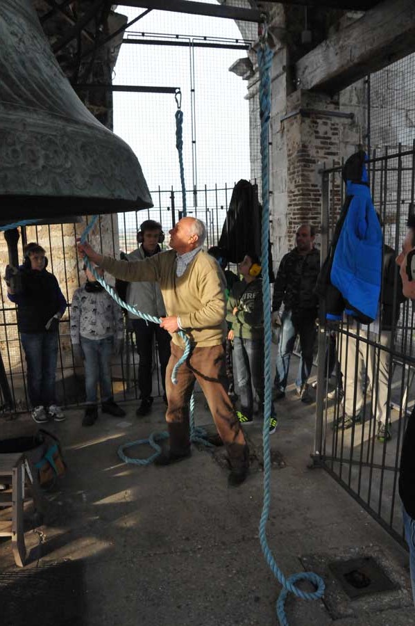 Es waren so viele neue Erkenntnisse, die wir dann auch gleich in die Praxis umgewandelt erleben durften, so das sich für uns eine Lehrstunde im Glockenspiel echter Kirchenglocken ergab. Und tatsächlich erhielten die Jungen und Mädchen auch kontinuierlich Anweisen, was zu tun sei. Es bereitete allen sichtbar Freude, trotz des einen oder anderen Misstones, der zwangsläufig durch ständige Wechsel am Zugseil jeder einzelnen Glocke passierte. ES muss auch wirklich anstrengend sein, den richtigen Schwung beizubehalten, wie die Schweißperlen trotz November bewiesen.