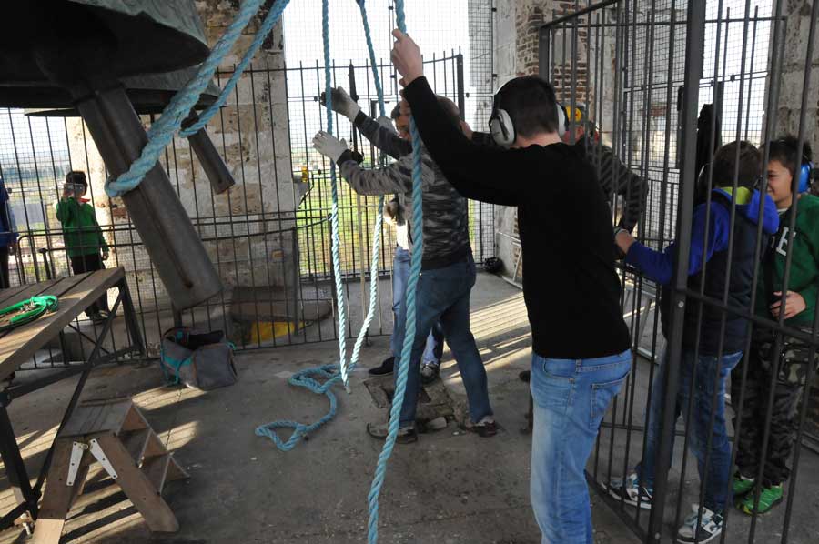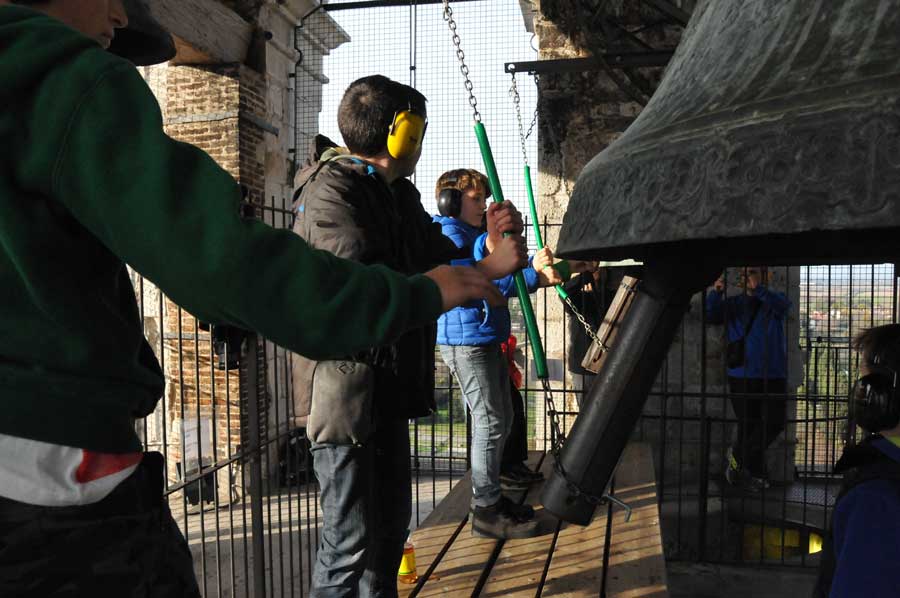 Jugendliche üben den Glockenbetrieb