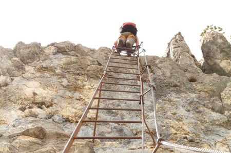 Der Steig sollte aufgrund seiner Länge und der zu überwindenden Höhenmeter nicht unterschätzt werden. Die Leitern sind sehr ausgesetzt, aber nicht sonderlich schwer. An heißen Tagen genug Flüssigkeit mitnehmen. Die Lage der Stiege ist am Vormittag komplett in der Sonne.