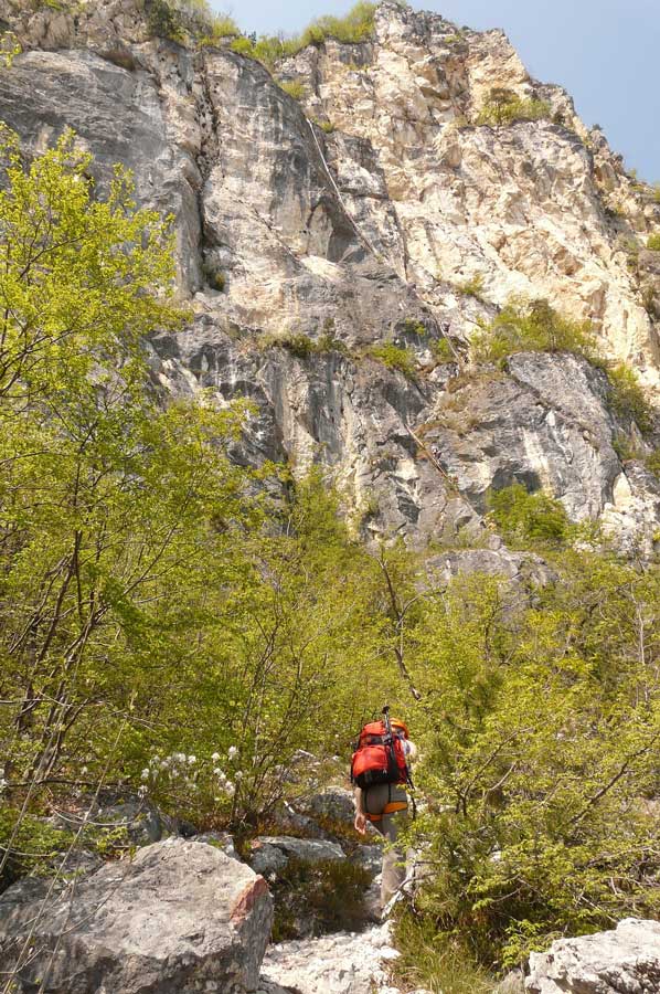Denn eine der besten Gardasee - Ferratas und eine der ältesten Steiganlagen der Region liegt am Nordufer des Gardasees, direkt oberhalb des viel besuchten Touristenortes Riva del Garda. Für die Via dell' Amicizia sollte man zumindest ein gewisses Maß an Kondition mitbringen, denn man bewältigt bis zum Gipfel fast 650 Höhenmeter.