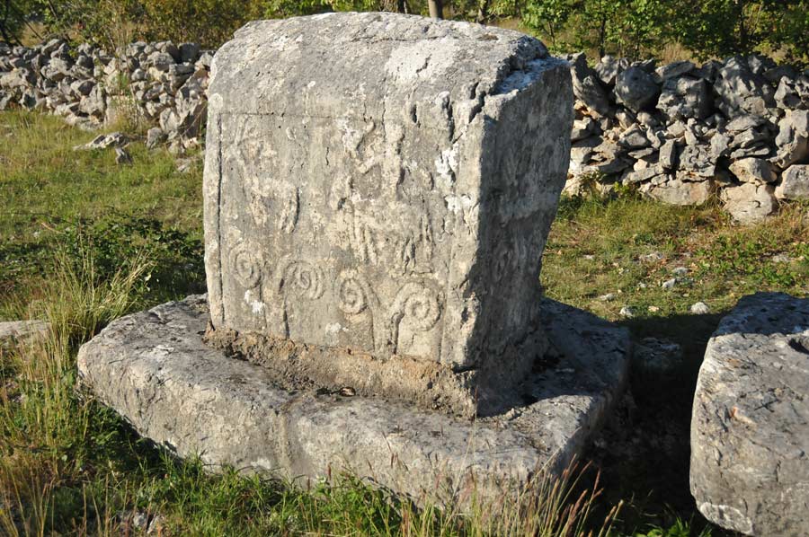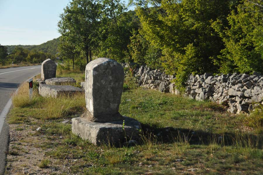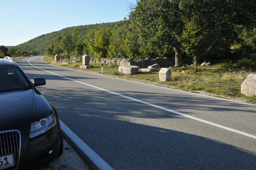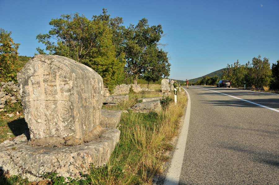Grabsteine - Wir waren auf dem Rückweg von Imotski zum Campingplatz in Omis, als wir auf freier Strecke auf eine Ansammlung bearbeiteter Steine trafen, die unmittelbar unser Interesse hervor riefen.