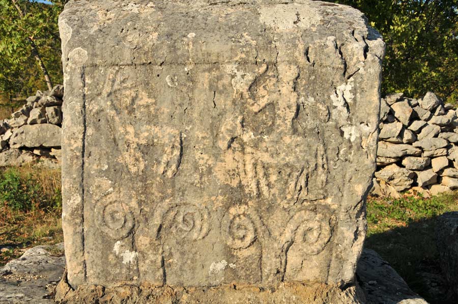 Manche Stećci zeigen in ihren Motiven Reste örtlich heidnischer Mythen und Rituale, mit heraldischen Symbolen den Status eines regionalen slawischen Adligen oder die Taten der Menschen, für die sie gesetzt worden sind.