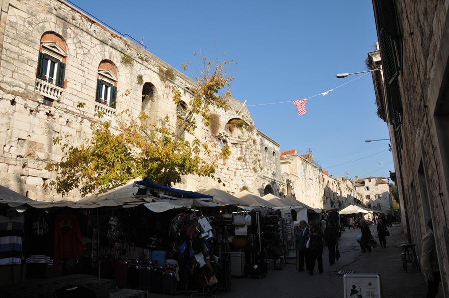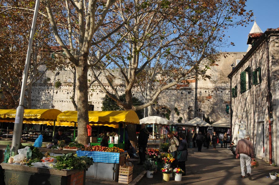 Als ortskundiger Stadtführer war schnell ein Parkplatz gefunden und durch bunte Markstände rechts und links des Weges ging es in Richtung Diokletianspalast, der sich über die Jahrhunderte auch zum Handels- und Kernzentrum von Split entwickelt hat.