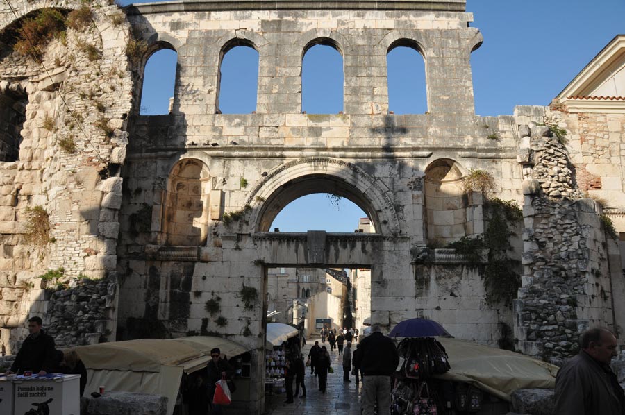 Im Laufe der Jahrhunderte wurde die ursprüngliche Architektur geändert, doch die Einwohner dieser Stadt, die lateinisch Salonae Palatium, dann Split genannt wurde, wussten die Struktur des Palastes unter der byzantinischen, venezianischen und österreichisch-ungarischen Herrschaft zu nutzen und sie dabei so wenig wie möglich zu beschädigen.