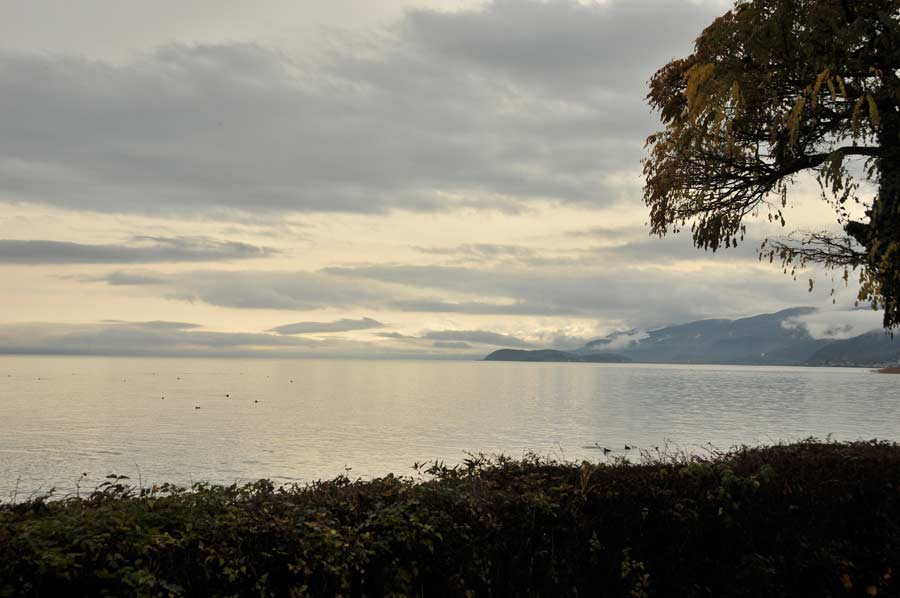 So folgen wir weiterhin der E852 bis zur Grenzstation zwischen Albanien und Mazedonien, hoch oben in den Bergen (41°05'24.7"N 20°36'27.6"E). Auch die Kontrollen hier verlaufen ohne Schwierigkeiten und so geht es hinab zum Ohridsee, dessen Wasserspiegel bereits auf 695 Metern über dem Meer liegt. Wir sind gespannt auf den Campingplatz, einem Familienbetrieb und werden, wie so oft, nicht enttäuscht. Direkt am Seeufer mit kleiner Restauration und zur familiären Begrüßung gibt es einen ersten mazedonischen Mocca.