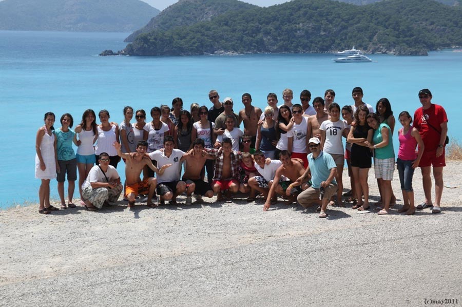 Alle erreichten rechtzeitig die Abflughalle. Viele Eltern verabschiedeten sich von uns. Das Abschiednehmen begannen wir mit einem großen Abschlussbild vor dem Eingang zur Flughafenhalle mit allen Jugendlichen, Eltern und Lehrern. Einige gingen schnell auseinander, andere hatten sich noch viel zu sagen und manche Träne floss, weil man lange Zeit einen netten Menschen nicht mehr sehen wird. Die Abgabe der Koffer verlief trotz Übergewicht ohne Probleme. Ein kleines Problem gab es dann, als Pieter feststellte, dass seine Einreisekarte mit seinem Koffer in den Tiefen des Flughafens gelandet war. Doch das Flughafenpersonal half, die wichtige Karte wieder zu finden. Als wir durch den Sicherheitsscheck mussten, verlangte man eine Einsicht in meinen Rucksack. Man suchte nach einer Schere. Erst dann fiel mir ein, dass ich die 1.Hilfetasche nicht in der großen Reisetasche verstaut hatte, sondern sie sich noch im Deckelfach des kleinen Rucksackes befand. Erstaunlicherweise bekam ich sie nicht abgenommen, sondern es wurde nur vermerkt. In Istanbul entsorgte ich sie aber, da ich keinen Ärger haben wollte.