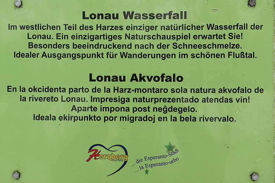 Auf dem Weg zu unserem Treffen an der Oker Talsperre im Harz hatten wir einen kurzen Tankstopp in Herzberg am Harz vornehmen müssen, wo uns der Namenszusatz Herzberg – Esperanto-Stadt oder wie es im Original heißt: Herzberg – la Esperanto-urbo ins Auge fiel.