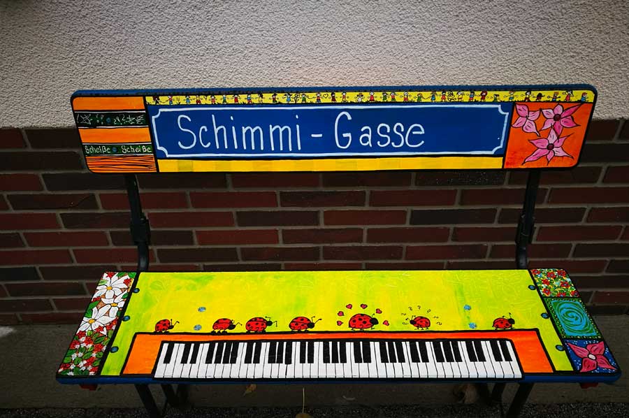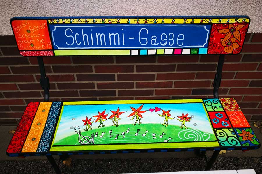 Nur ein Straßenschild an einer Hausfassade, das uns fast per Zufall ins Auge gefallen war. Nein, doch weit mehr, so stießen wir vor einer kleinen Hafenkneipe auf die beiden im Bild gezeigten, einladenden bunten Holzbänke weit mehr als nur zwei Sitzgelegenheiten - viele Menschen fanden in der fiktiven Rolle Schimanski eine Person, mit der man sich identifizieren konnte - nicht nur um Touristen und Einheimische zum Stell-dich-ein anzulocken.