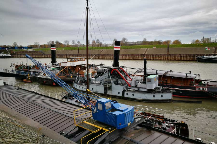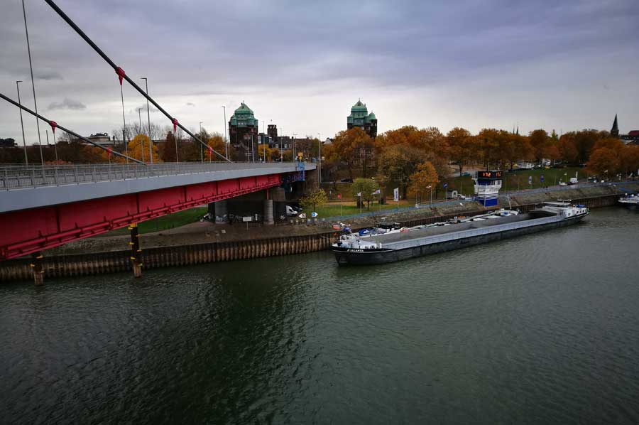 Mehr oder weniger per Zufall waren wir bei einem Spaziergang am Hafen von Duisburg auf einige der Überbleibsel dieser Kultfigur gestoßen, als uns ein Straßenschild auf eine "erste Spur" brachte. Von Essen aus waren wir trotz des regnerisch grauen Himmels auf einen kurzen Spaziergang zum Hafen gefahren, hatten uns gewundert, das trotz des Wetters noch eine Hafenrundfahrt angeboten und genutzt wurde. Einmal am Museum der Binnenschifffahrt angekommen, liefen wir am Pier entlang, bis wir auf die Horst Schimanski Gasse stießen.