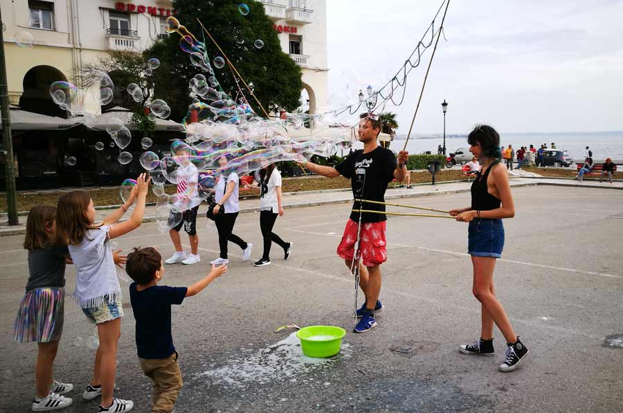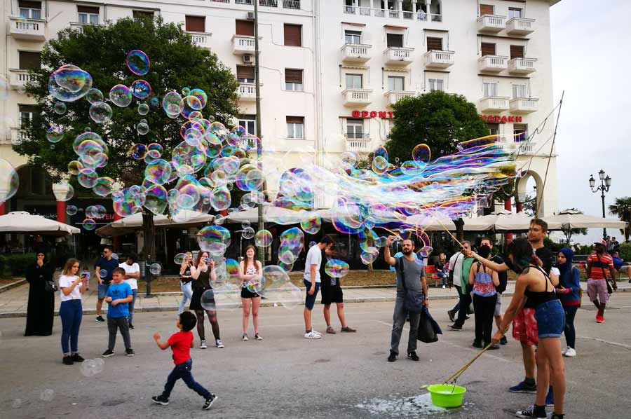Seifenblasenartisten in Thessaloniki