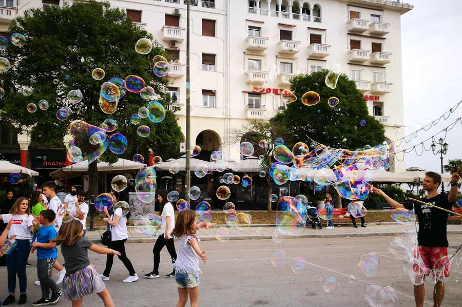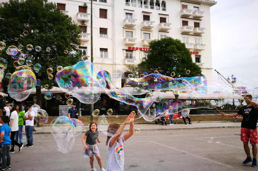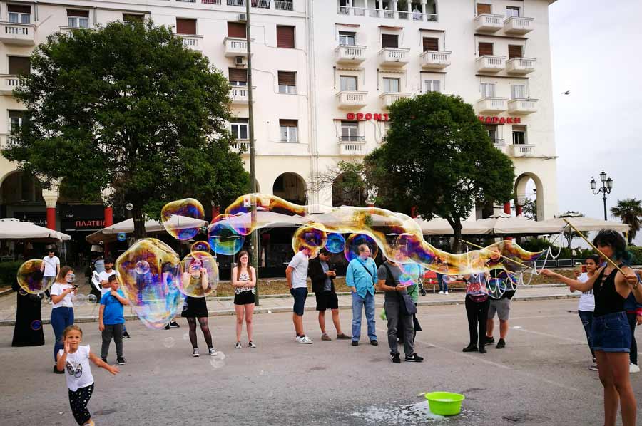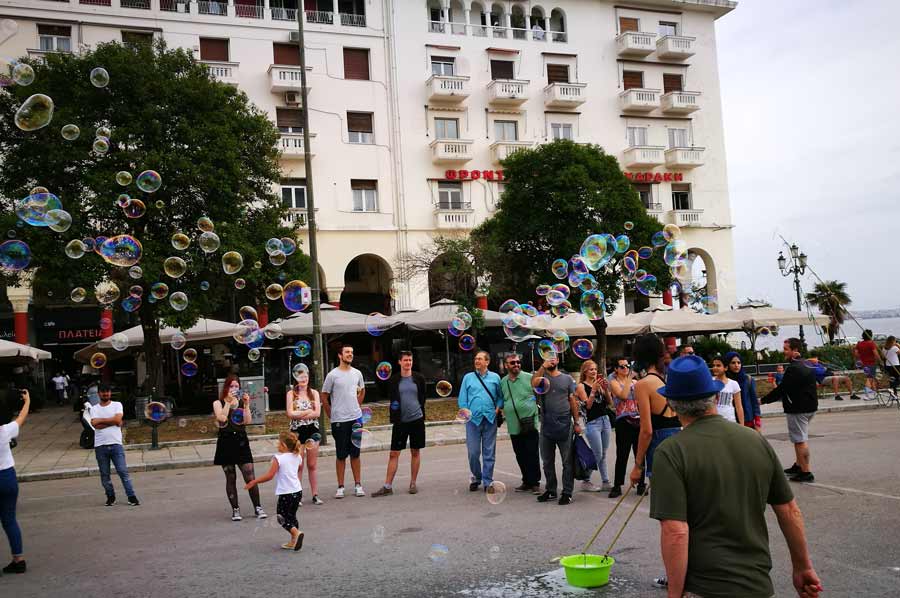 Seifenbläser auch in Thessaloniki unterwegs