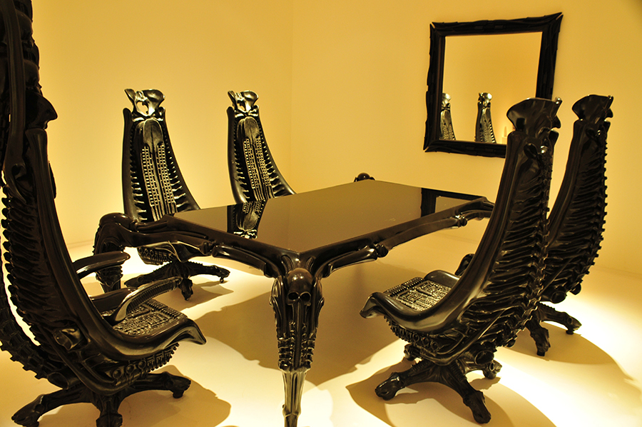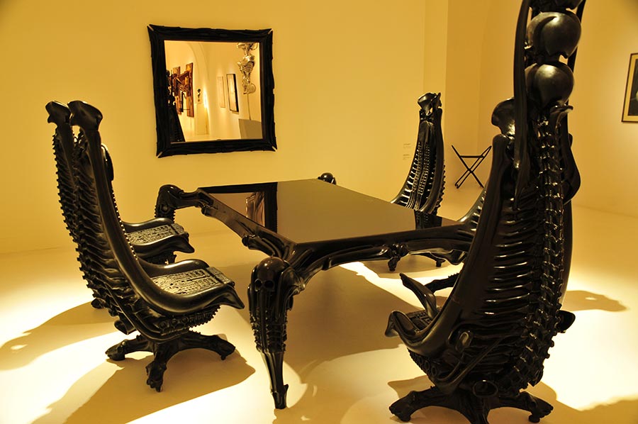 So entwarf Giger auch Tische, Spiegel, Lampen und andere Objekte wie z. B. einen Mikrophonständer für Jonathan Davis von Korn.