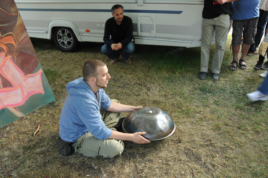 Kann ein einzelner Musiker mit Hilfe eines unscheinbaren Instruments so faszinieren? Er kann, wie wir in den kommenden Tagen noch häufiger feststellen sollten, denn diese Gruppenbildung war überall vorzufinden, sobald seine Handpan erklang.