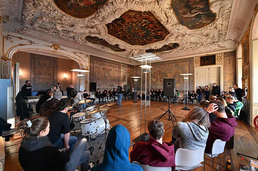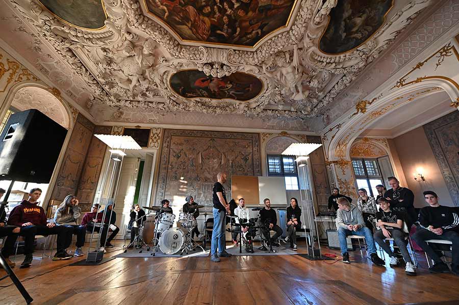 Sich in der Musikakademie zur gemeinsamen Probe treffen