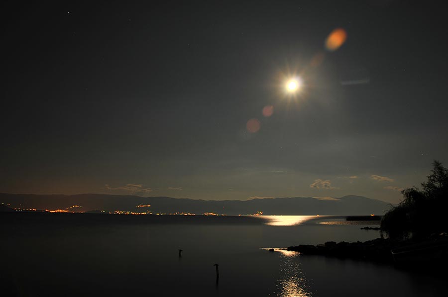 So präsentierte uns Judith auch eine bunte Mischung leicht tragischer Melodien aus südlichen Ländern, die sie mit Eigenschöpfungen durchsetzte. Zwischendurch gab es einige Erläuterungen zu den Stücken, Fragen der Zuhörer wurden beantwortet und wirkliche Begeisterung kam auf: ein Camper aus Polen sagte dazu, dass er sich einen schöneren Abschlussabend seines Aufenthaltes hier am Ohridsee kaum hätte vorstellen können. Ein junger Student des Bereichs Marketing aus Rumänien, der in London studiert, erwiderte daraufhin, das er sich nach diesem Konzert am Seeufer keine bessere Eröffnung seines Aufenthaltes hätte vorstellen können.